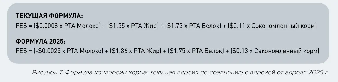 В формуле TPI также будет немного изменена формула конверсии корма. На рисунке 7 показана текущая формула и ее редакция от апреля 2025 года.