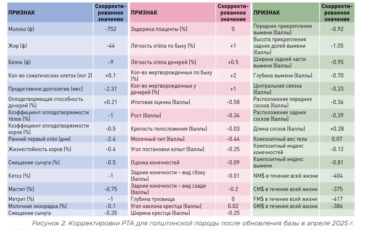 КАК СКОРРЕКТИРОВАНЫ PTA КОРОВ ГОЛШТИНСКОЙ ПОРОДЫ ПОСЛЕ ОЦЕНКИ В АПРЕЛЕ 2025 ГОДА?