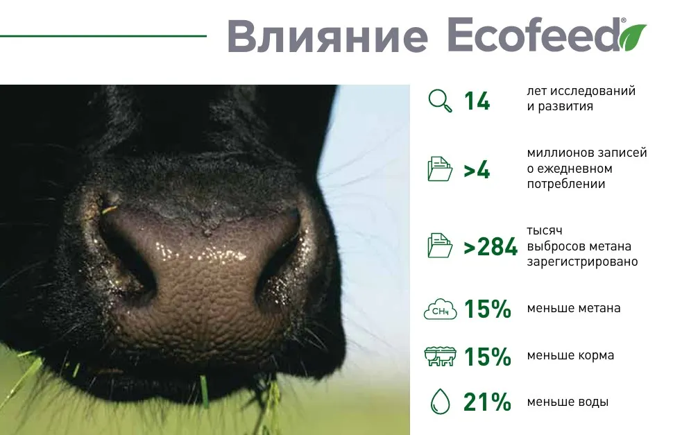 Решение. EcoFeed® - это генетический селекционный индекс, который предлагает долгосрочное и комплексное решение для повышения эффективности кормления и сокращения выбросов парниковых газов за счет создания крупного рогатого скота, который производит молоко и мясо с меньшим потреблением корма, воды и выбросов метана.